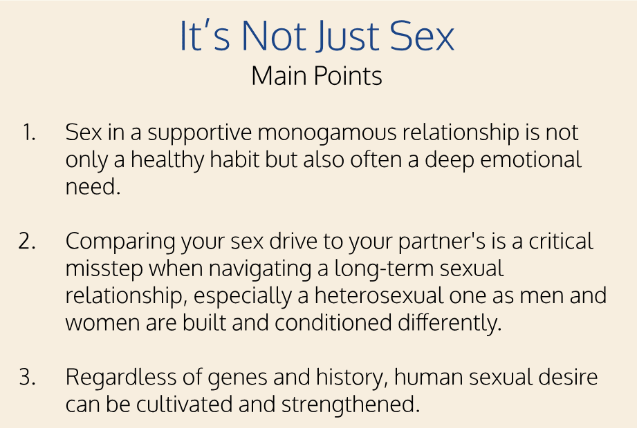 Fellas, cultivating her sexual desire is not all her job. Have you ever seen the Bird-of-Paradise doing his mating dance? YouTube it and prepare to be inspired. Do not let marriage or the sheer longevity of your relationship breed a false perception that courting your mate is no longer required. As noted, a wealth of research backs up gender differences in sex drive; piquing her interest will always be part of the dance. Also, keep in mind that womenโs sexual cycles start well before menโs (i.e., putting away the dishes before she gets home is foreplay!).